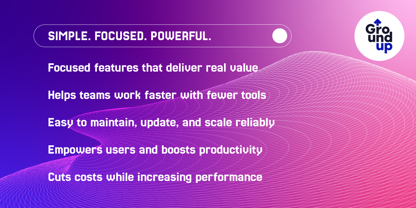 Complexity is seductive – it makes projects look ambitious. But in the real world, simple wins every time. It’s faster to use, easier to grow, and far more sustainable. The future belongs to teams that build technology that disappears — tools that let people focus on the work, not the system.